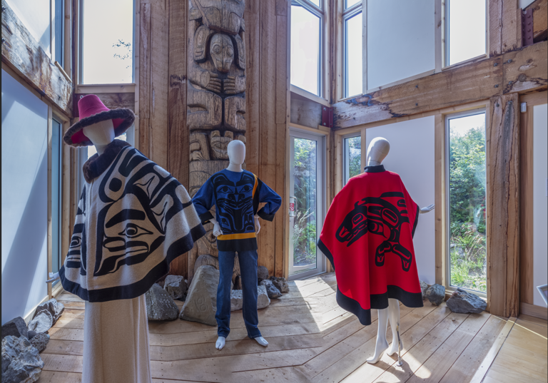 This edition features Killerwhale, a design inspired by the powerful orca ~ an enduring symbol of strength and presence in Pacific Northwest Coast cultures. Bold Haida formline art is rendered in a luxurious jacquard, creating a striking visual centerpiece. The design is drawn from traditional Haida basketry, evoking both movement and deep ancestral roots.